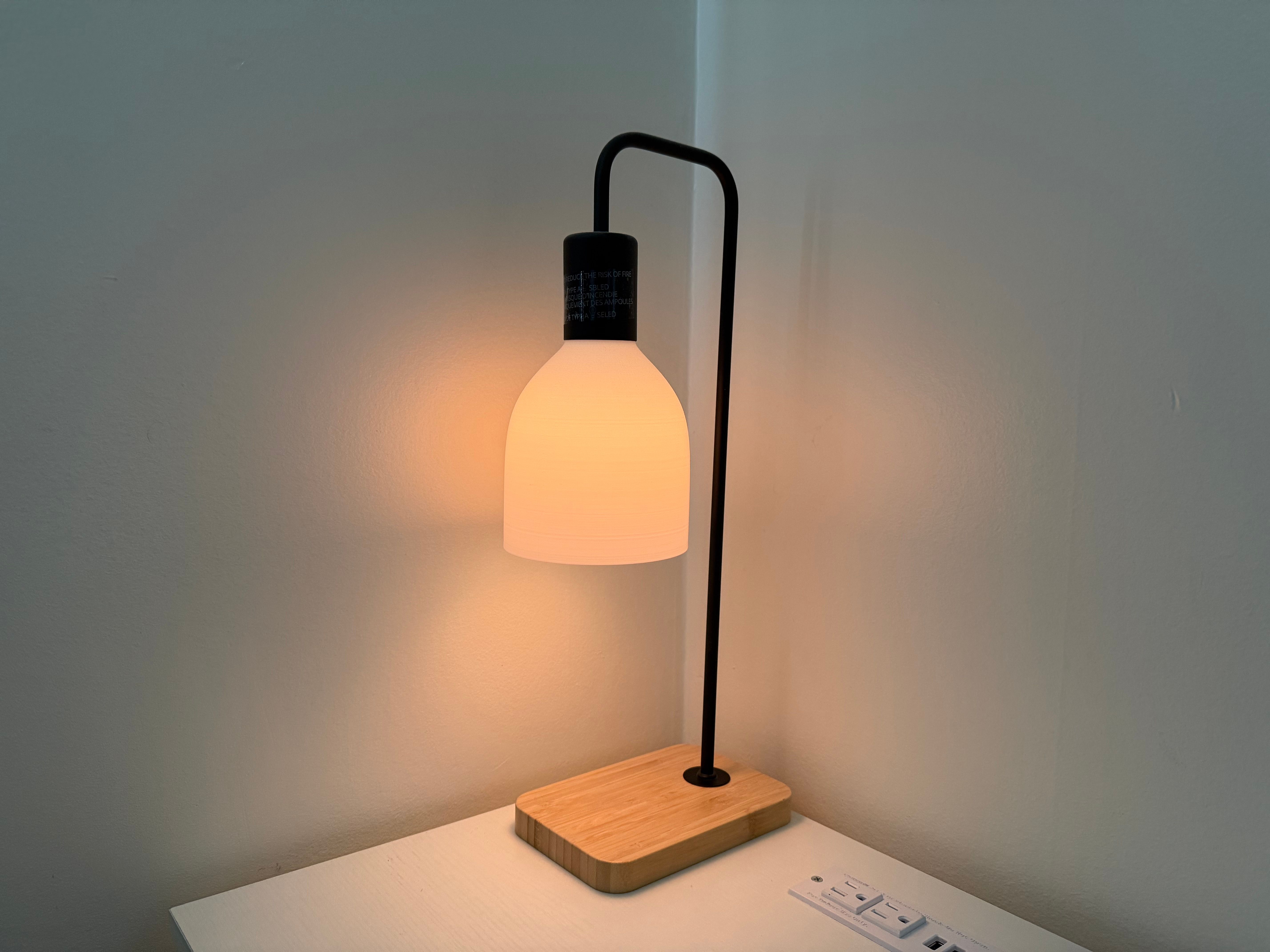 A custom 3D printed shade for IKEA's TVÄRHAND lamp that diffuses brighter bulbs and reduces glare.